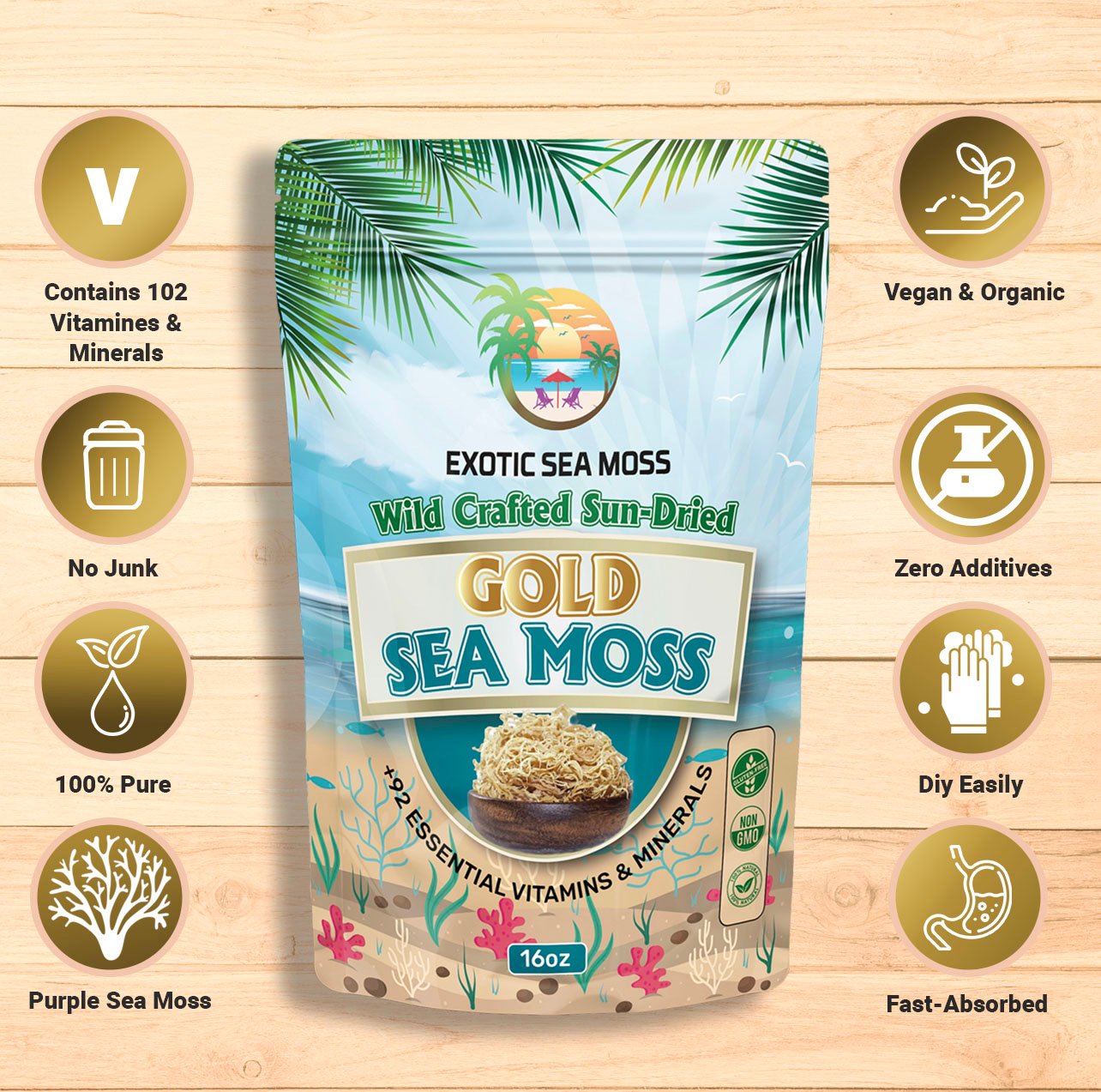 Gold Wild crafted sun-dried sea moss
